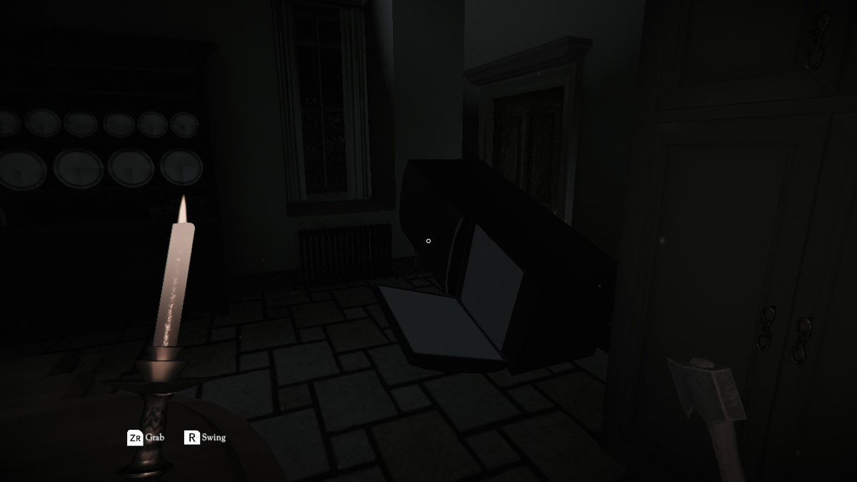 As previously stated, Don’t Knock Twice was originally released as a VR game. As we all know, the Switch is not a VR console. Put 2 and 2 together and you’ll realize the controls were probably never meant to work properly with the already uncomfortable joycons. The biggest offender in this aspect is the overuse of the ZR button alongside other buttons, like R or B. ZR works both as a general action button as well as the button you use to drop currently held items. Given the game’s precarious aiming, the fact you carry an axe for more than two thirds of your total playtime and the fact there is a lot to aim at and touch, let’s just say you’re going to scream at the game a lot, and not due to jump scares or moments of tension. Everything is extremely sluggish, from your movements to your camera. You can clearly see how translating VR gameplay to this game was a colossal failure.